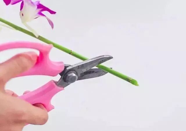 1、洋兰拿回家后,45度斜剪枝,深水醒花5—8小时,由于长途运输缺水,看起来会怏怏的,喝饱水就精神了.